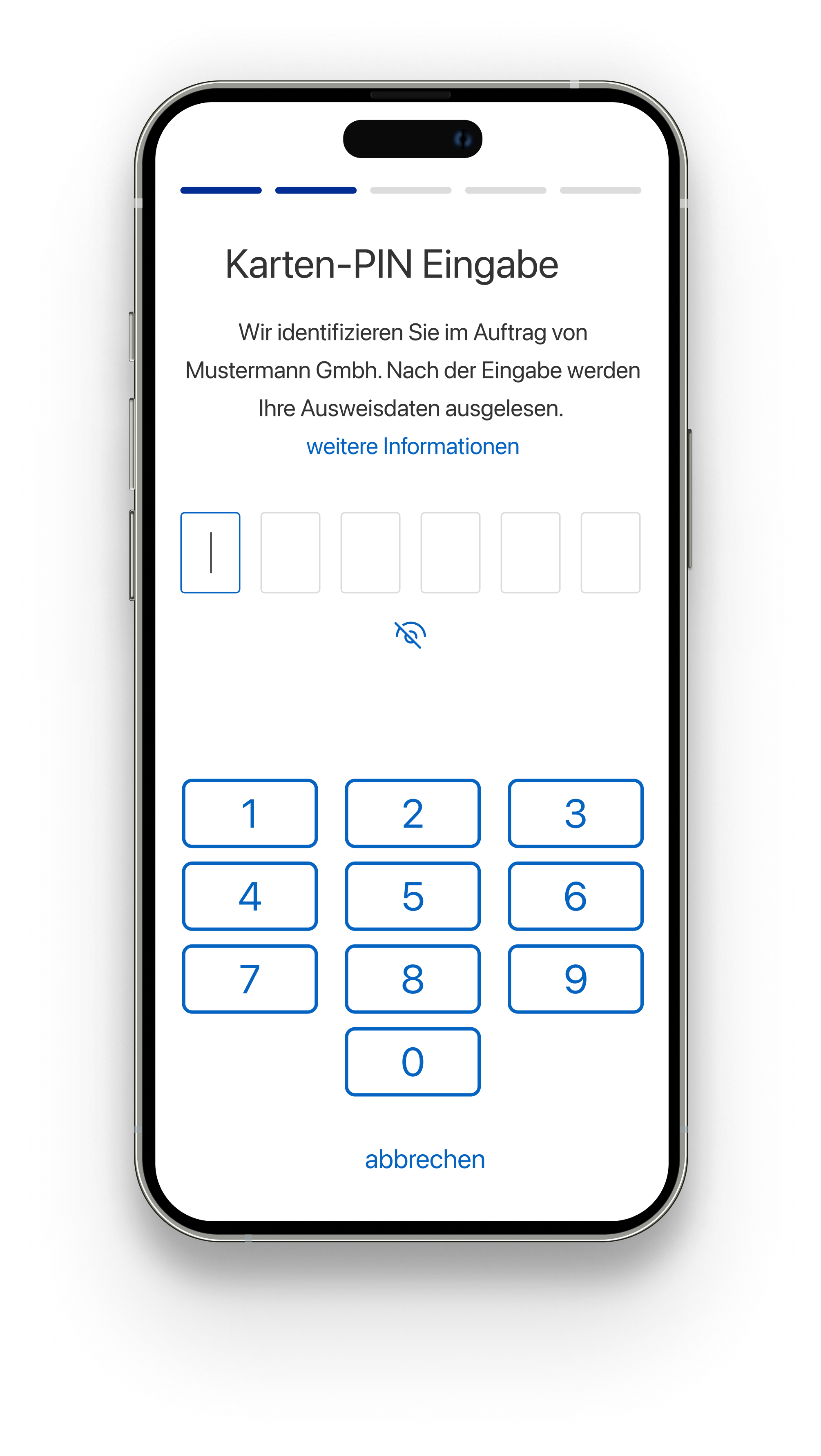Ihre Kund:innen identifizieren sich in zwei Schritten per NFC und PIN – digital, sicher und komfortabel.