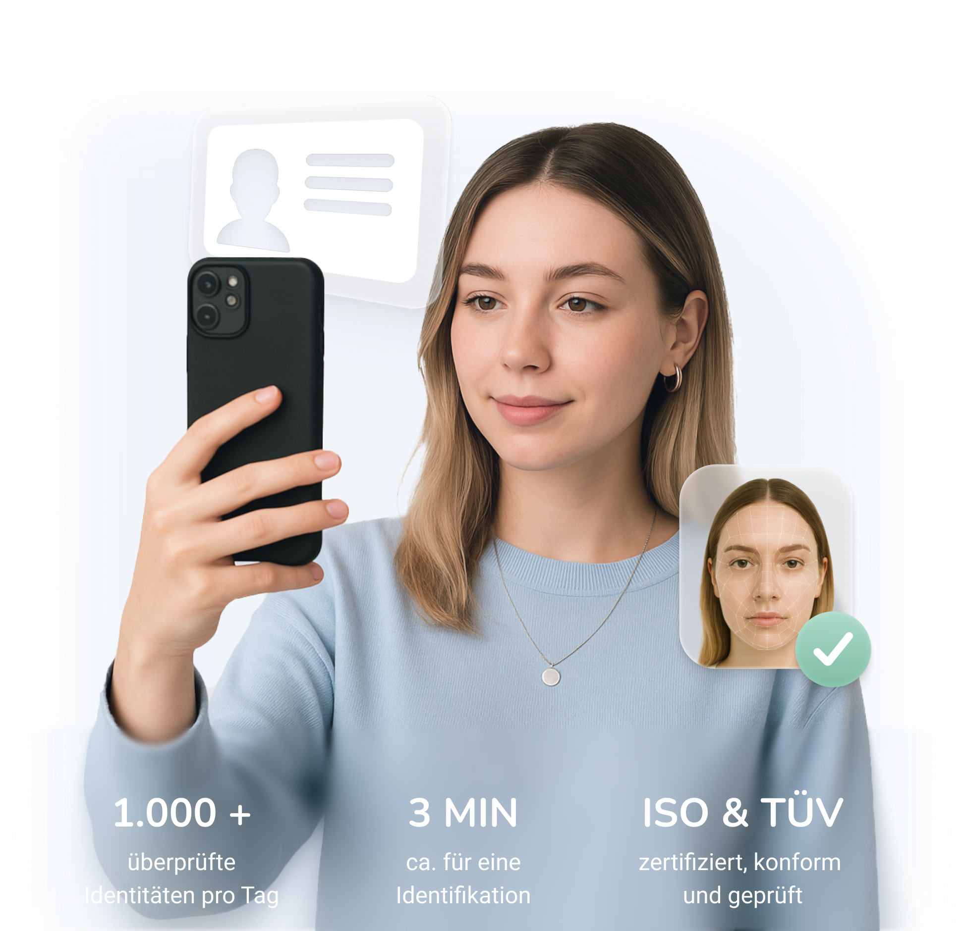 Schnelle und sichere Identitätsprüfung – vollständig im Einklang mit GWG- und eIDAS-Standards.